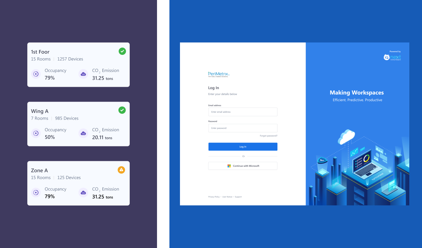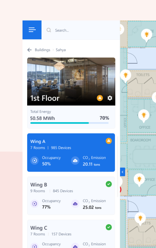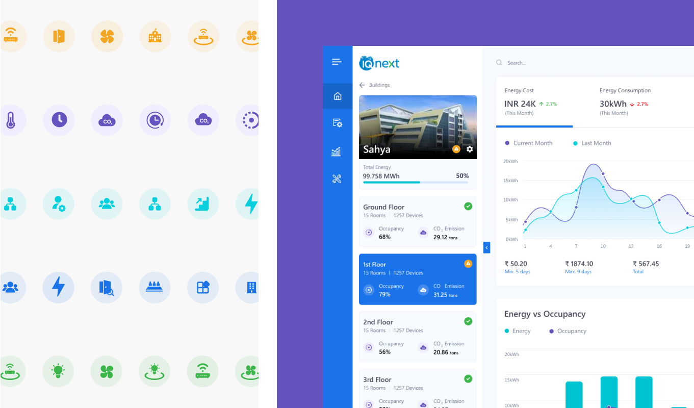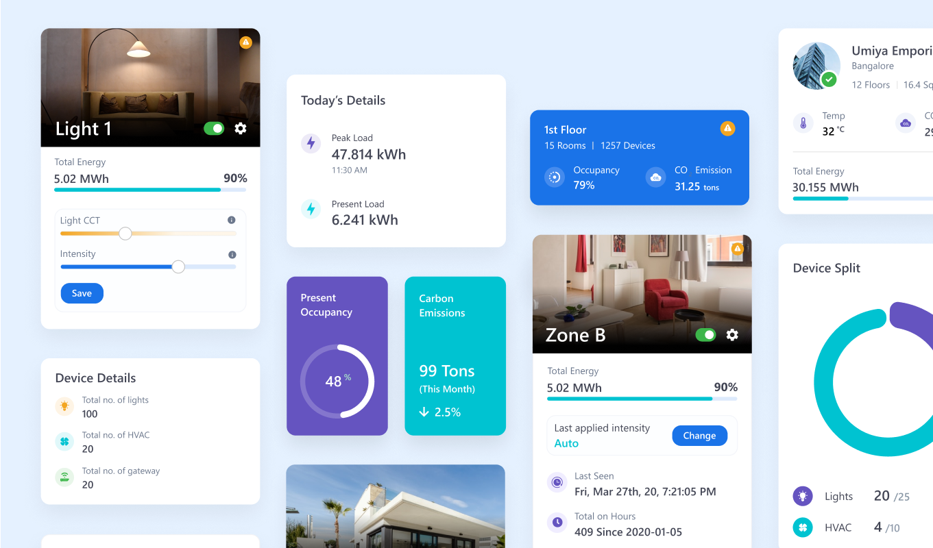 We designed a comprehensive dashboard enriched with graphical representation of information and data. A real-time floor map view was designed to make device operations dynamic and contextual. Further, rule-based device operations setting was devised to make device control across buildings effortless. To streamline energy consumption, we created energy vs occupancy maps, easy-to-read energy reports, and occupancy reports.